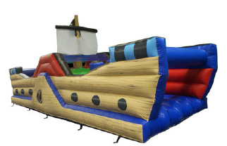 Pirate obstacle course with ladders, biff bash slide and bouncing area